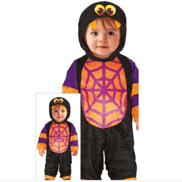 Disfraz de Araña para Bebé, la Araña más simpática de halloween, disfraz ligero y muy completo, compuesto por jumpsuit y gorro cabeza de araña.