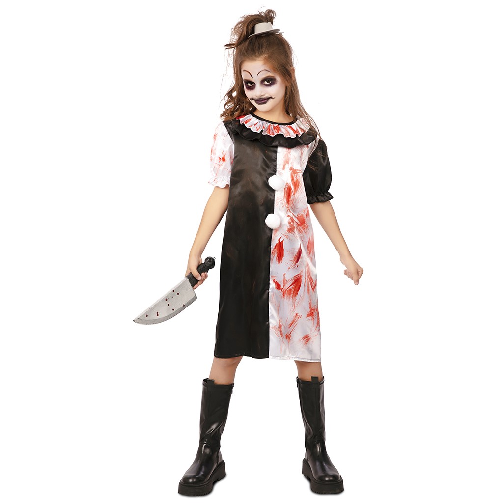 Disfraz de Payaso Terrorífico Art Niña de la película «Terrifier». en tallas de 7-9 y 10-12 años.