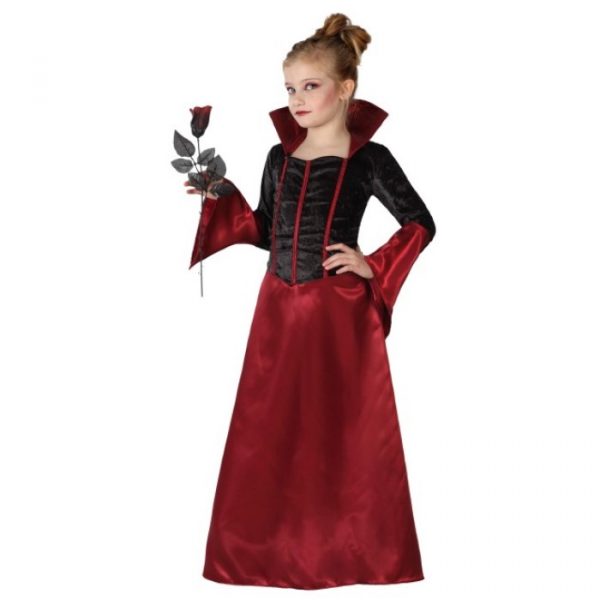 Disfraz de Vampiresa Granate infantil en tallas de 5-6, 7-9 y 9-11 años.